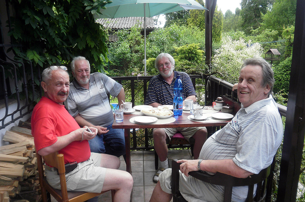 Pohodový snímek z loňského června u Jardy Vorlíčka na chatě – zprava Jarda, Martin Pinta, Miroslav Roubíček a moje maličkost
