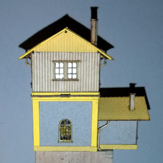 Na typickou „nácestnou“ vodárnu z přelomu minulých století jsem fakt myslel dlouho. Před delším časem jsem dokonce využil tehdejší nabídku (tenkrát novou) firmy PRUCHA Research, která je známá především výrobou 3D tiskáren. Ta nabídka spočívala v tom, že z dodané předlohy vypálí laserem cokoliv z jakéhokoliv materiálu. Tak jsem strávil několik dní konstrukcí právě oné typické vodárny a ještě jednoho objektu. Dal jsem si záležet a kombinoval jsem asi tři různé tloušťky tvrzeného kartonu. Po velmi dlouhé době, vyplněné několika telefonáty vysvětlující mi, že nemůžeme sehnat ten či onen karton, jsem nakonec za nemalý peníz dostal pytlík sesypaných dílů obou objektů. Některé byly vypáleny dvakrát, jiné chyběly. O kvalitně použitého kartonu pomlčím… Tak jsem svůj projekt vodárny odložil do krabice, kde leží dodnes. Od té doby jsem u této věhlasné firmy nic dalšího neobjednal, ale taky jsem své modely nepostavil.